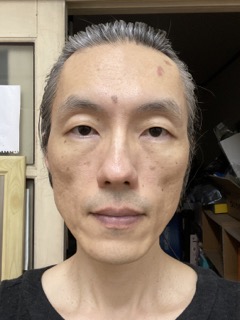 미간과 오른쪽 눈(사진상의 왼쪽) 아래의 검버섯(?)을 컨실러로 가려주었다. 컨실러의 색이 파운데이션보다 지나치게 밝으면 흰 얼룩이 생긴 것처럼 되어 버려서 색을 맞추기가 어려웠다. 컨실러로 완전히 숨기지는 못하지만, 바르기 전보다는 깨끗해 보인다. 세필로 검버섯 위에만 발랐으면 더 좋았겠다.