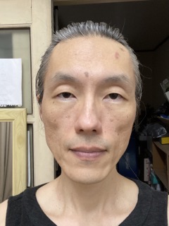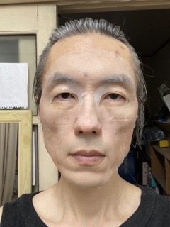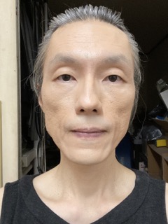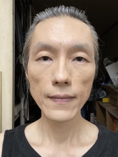 미간과 오른쪽 눈(사진상의 왼쪽) 아래의 검버섯(?)을 컨실러로 가려주었다. 컨실러의 색이 파운데이션보다 지나치게 밝으면 흰 얼룩이 생긴 것처럼 되어 버려서 색을 맞추기가 어려웠다. 컨실러로 완전히 숨기지는 못하지만, 바르기 전보다는 깨끗해 보인다. 세필로 검버섯 위에만 발랐으면 더 좋았겠다.