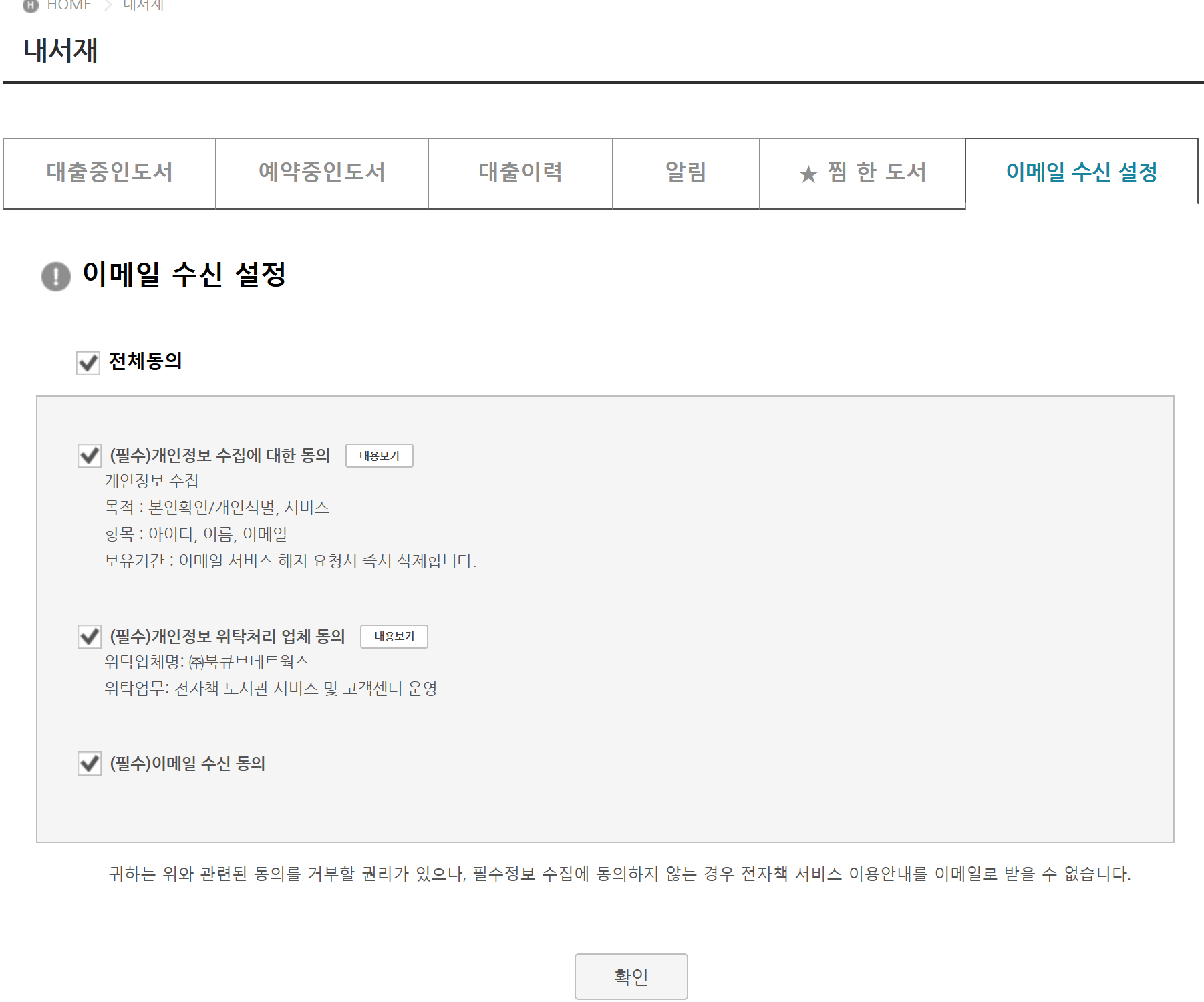 ‘내서재’ 화면에서 이메일 수신 설정을 했다.