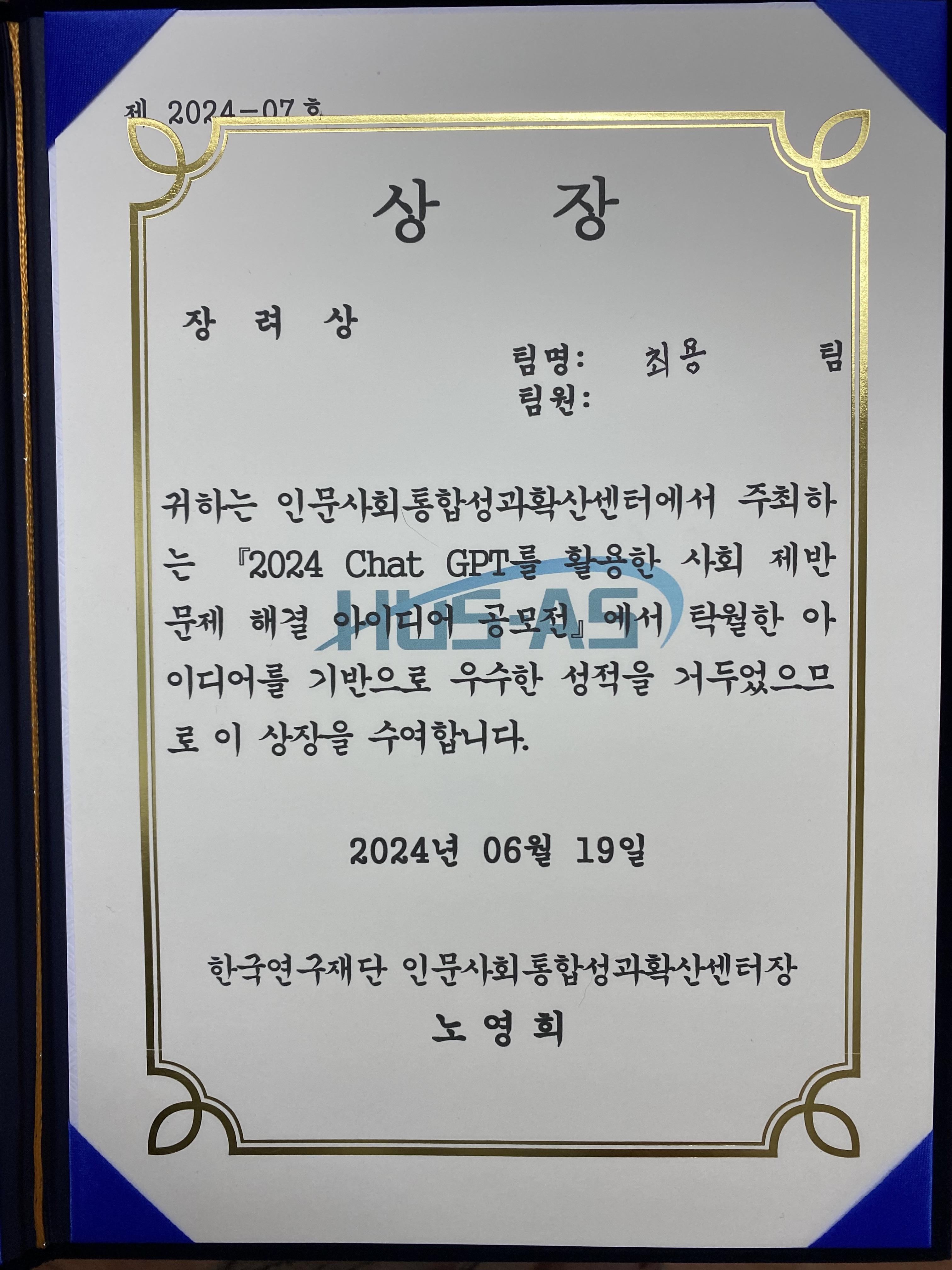 두 달 쯤 전에 문득 ‘챗GPT 관련 공모전이 있지 않을까’라는 생각이 들어 찾아보니 인문사회통합성과확산센터에서 진행 중인 것이 있었다. 응모하기 전에는 이런 기관이 있는지도 몰랐다.