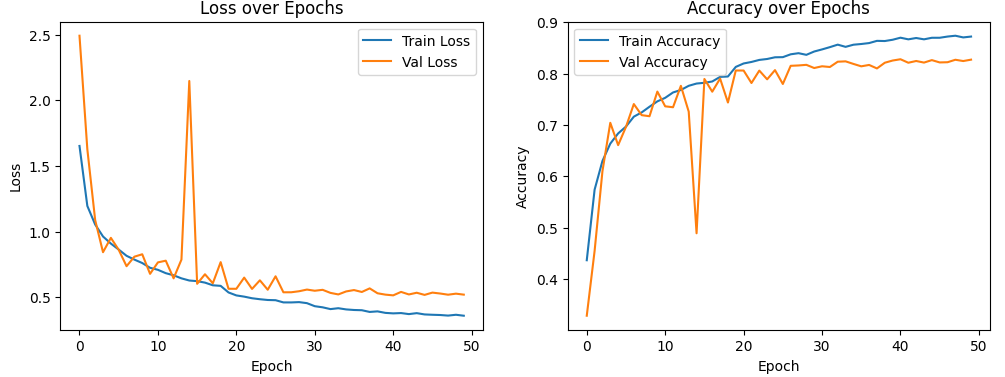 - 성능 향상 정도: 검증 정확도가 약 63%에서 82.80%로 약 20% 포인트 상승했다.