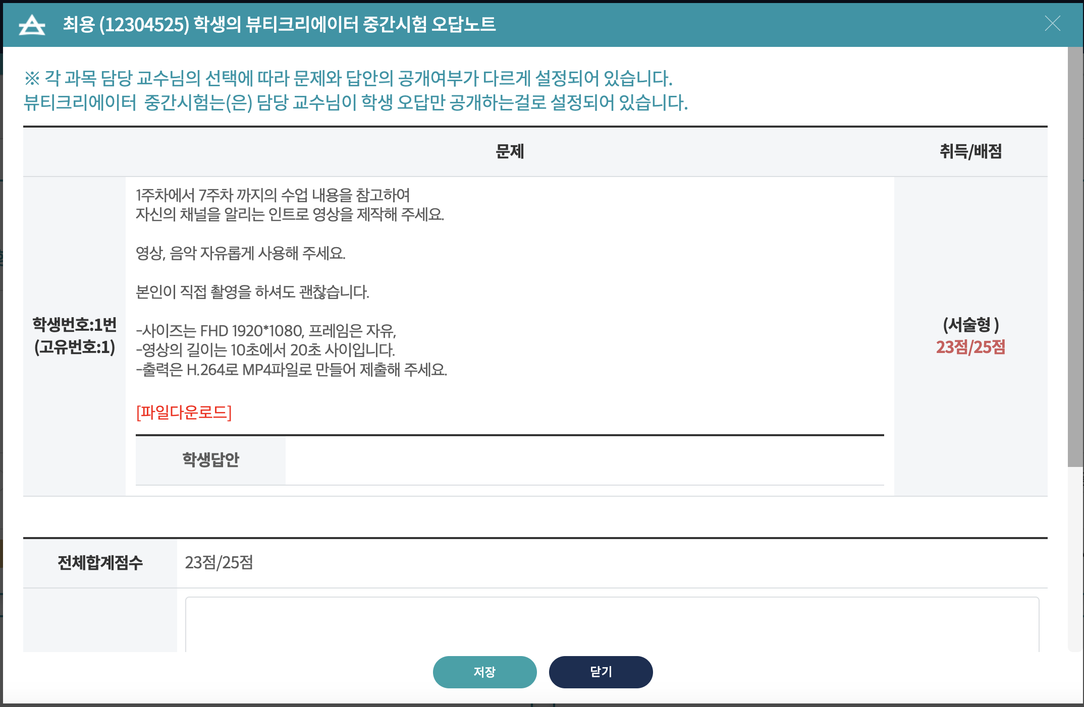 평가 결과를 확인해 보니 25점 만점에 23점으로 잘 나왔다.