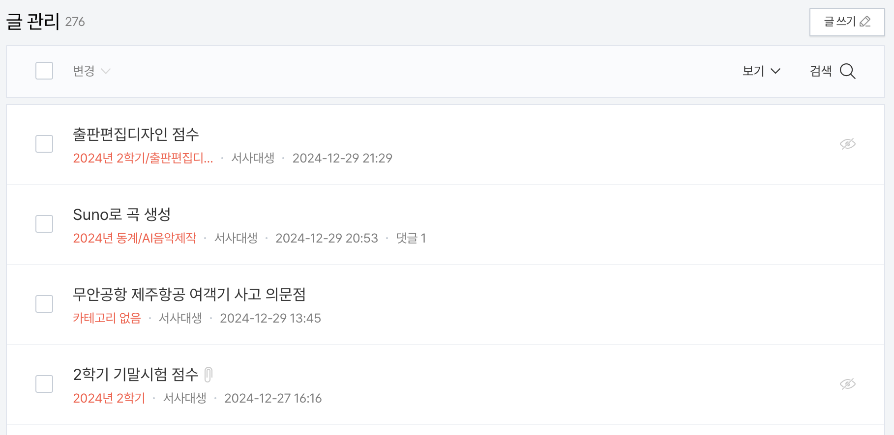 글을 65개만 남기고 나머지는 비공개 처리했다. 이제 원래 있던 글 중 반의 반만 남았다.
