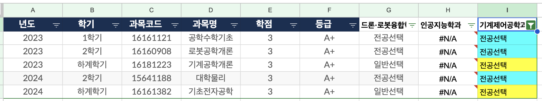 그리고 재미있게도, 기계제어공학과 전공 과목을 5개나 들었다. 모두 개론이긴 하지만.