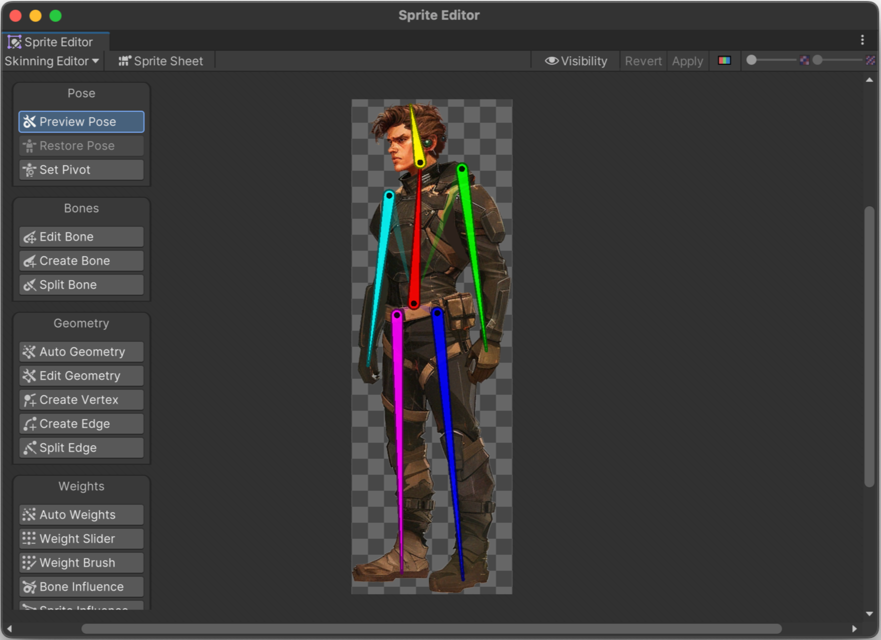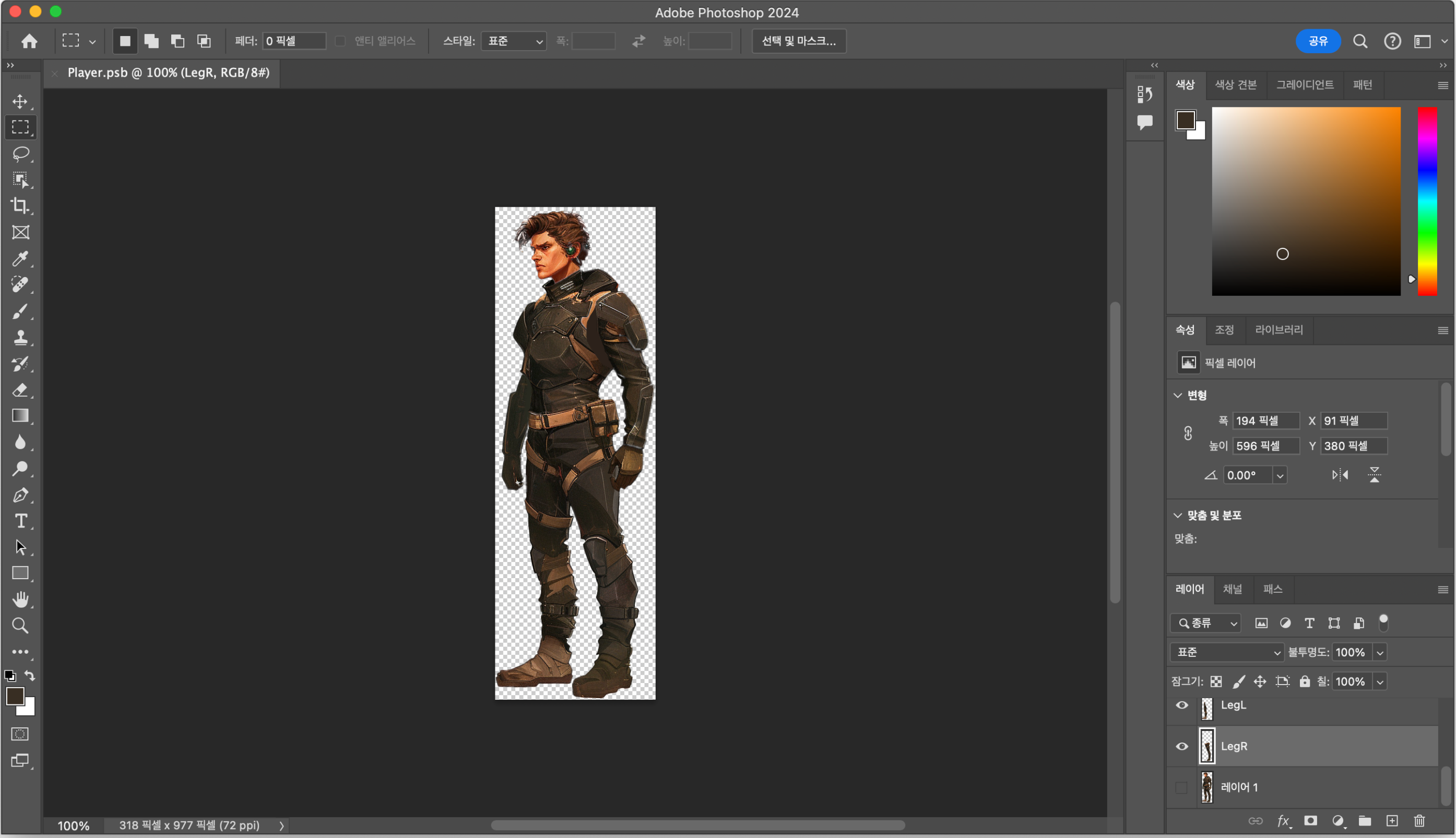 캐릭터의 팔다리 움직임을 구현하려면 포토샵으로 머리, 몸통, 사지를 분리한 뒤 유니티에서 뼈대를 만드는 작업을 해야 한다. 어렵고 귀찮아 보여서 처음에는 안 하려고 했는데, 막상 해보니 재미있고 그리 어렵지 않았다. 유니티로 캐릭터 움직임을 만드는 방법은 학교 수업에서 다루지 않은 주제인데 이번에 배웠다.